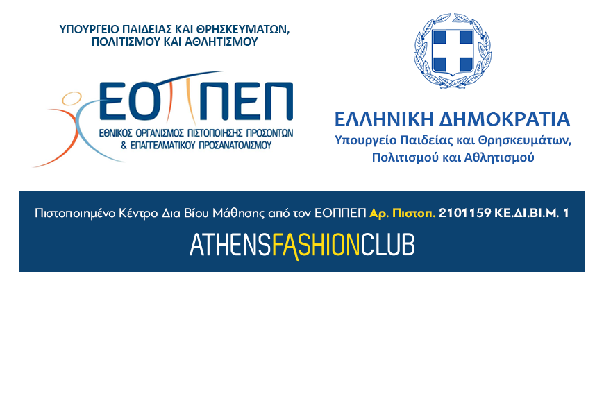 Η σχολή Μόδας AthensFashionClub λειτουργεί από τις 23 Δεκεμβρίου 2015 ως Κέντρο Δια Βίου Μαθησης, Επιπέδου 1. Η σχολή είναι πλέον Πιστοποιημένο και αναγνωρισμένο Εκπαιδευτήριο σε όλα τα προγράμματα σπουδών, σεμινάρια, Μονοετή, Διετή και Επαγγελματικά Προγράμματα Σπουδών σπό το Υπουργείο Παιδείας …