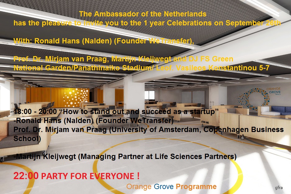 GREEKNEWSAGENDA/ 30 September 2014 In September 2013, the Dutch Embassy in Greec and its partners presented the idea of Orange Grove, flexible workspaces for young entrepreneurs in Athens. At a time when many young Greeks face the choice of moving …