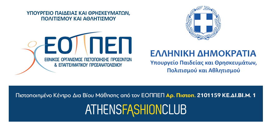 Ο Ομιλος Επιχειρήσεων Μόδας AthensFashionClub λειτουργεί από τις 23 Δεκεμβρίου 2015 ως Κέντρο Δια Βίου Μάθησης, Επιπέδου 1.